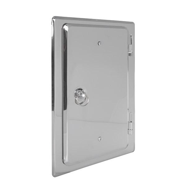 Drzwiczki szczelnie zabezpieczają wyczystkę komina i umożliwiają okresową kontrolę przewodu. Zapewniają łatwy dostęp do komina, co pozwala na szybkie usunięcie nadmiaru sadzy lub innych zanieczyszczeń w celu poprawy drożności. Stalowa ramka drzwi zwiększa sztywność całej konstrukcji. Wykonane ze stali inox, grubość materiału 0,6 mm.