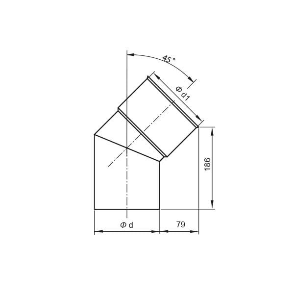 Element stosowany w celu zmiany kierunku przepływu spalin przy przyłączu kotła. Kąt 45 st.